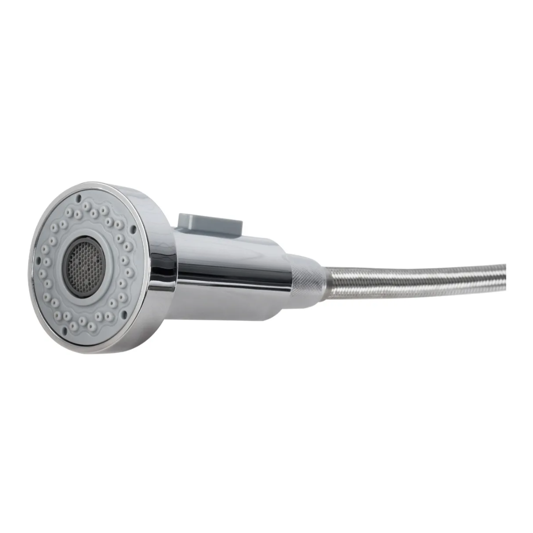 Acompanha ducha pré-lavagem flexível com suporte em mola, que garante sustentação e segurança durante o uso. Também conta com saída tradicional com mecanismo 1/4 de volta, bica giratória e arejador em aço inox com tela, proporcionando fluxo de água arejado e eficiente para as tarefas do dia a dia.